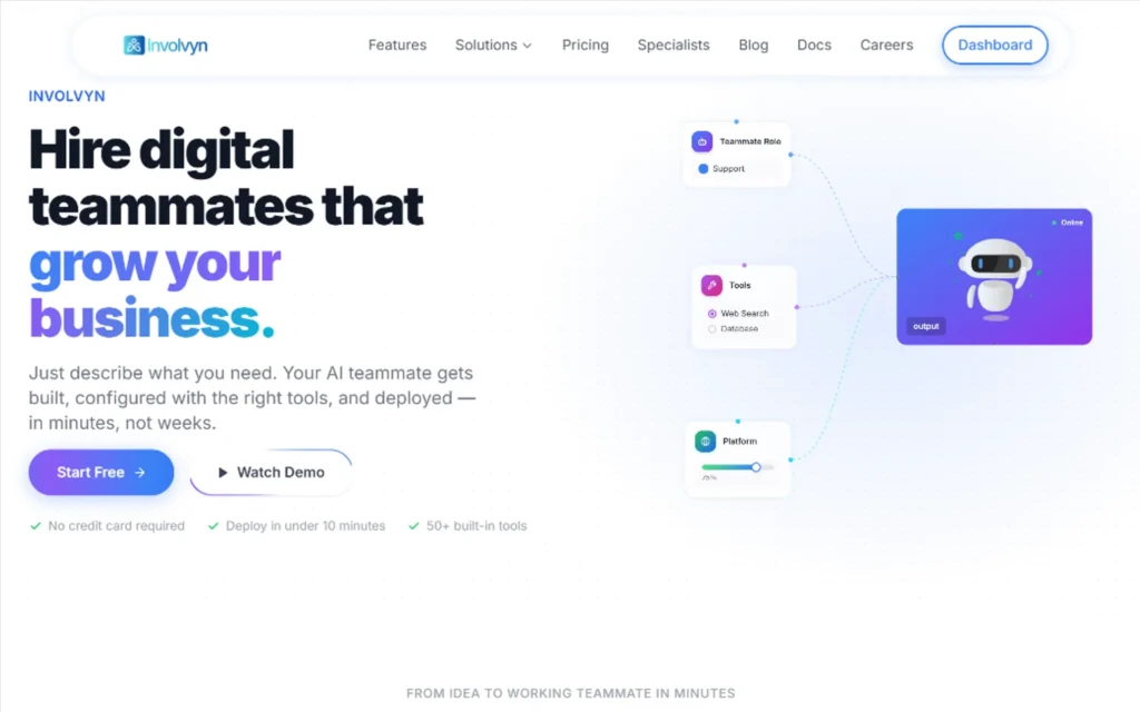 AI Digital Teammates that automate tasks, manage workflows, and grow your business 24/7 with 50+ integrated tools.